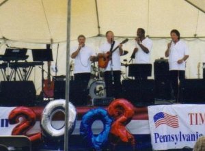 Break The Glass, and Coming Home From School. As you can see, we were young. We had a lot of good times. The group broke up when education and work demands limited our time to perform. We have reunited a few times for very special events. In the picture below, we performed in 2002 for the Canonsburg Bicentennial celebration.The Donnybrooks were honored to be included in the Vocal Group Hall of Fame in Sharon, PA in 2002.