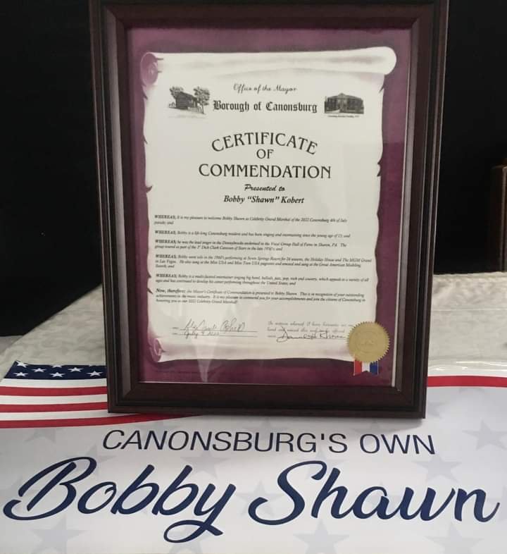 Wherever I go, people always ask about where I live or where I am from. Critics have written,” there must be something in the Canonsburg drinking water. Bobby Shawn follows in the tradition that produced Canonsburg’s Perry Como, Bobby Vinton, the Four Coins, and many other singers and musicians; who performed in the Pittsburgh area in their early years.”